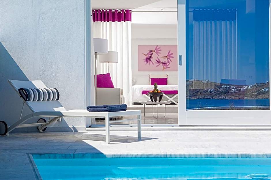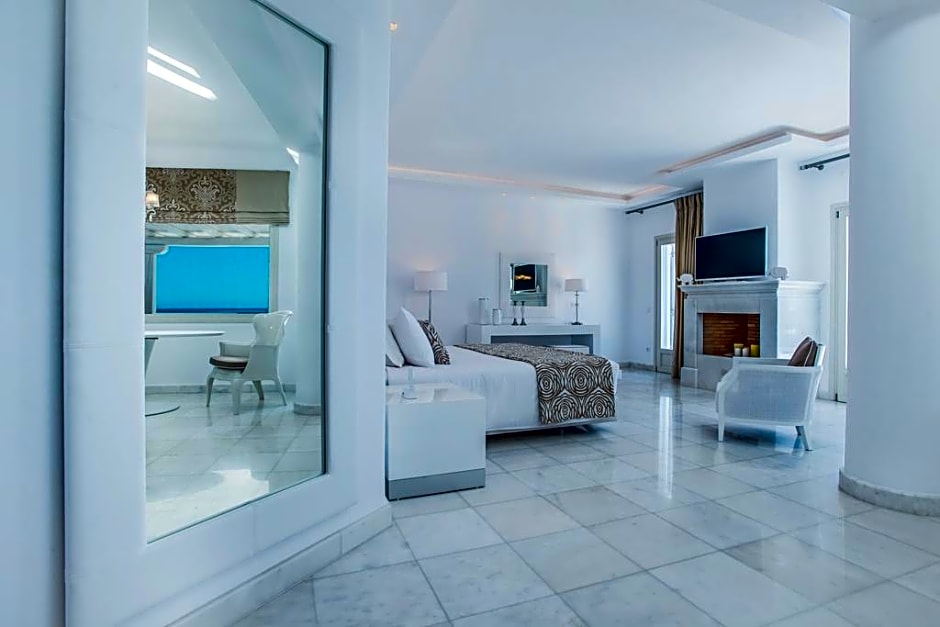 Boasting Aegean sea views from its balcony, this large and bright suite offers a private outdoor pool, a large seating and dinning area along with a Nespresso coffee machine and capsules.